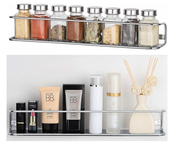 Providing additional storage space while creating a sophisticated display, these Wall Mounted Spice Storage Racks add function and character to any kitchen or bathroom. Keep your spices and condiments or other small items organized. Each rack measures 15.5″L x 3.5″W x 2.3″H. Get TWO for only $8.32!